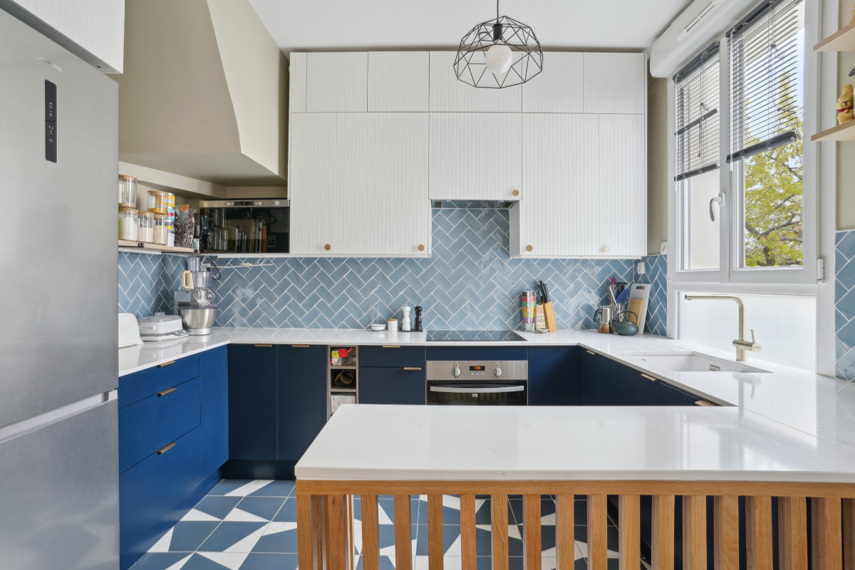 Plusieurs projets ont ainsi vu le jour en repeignant des meubles un peu vieillots hérité de la famille, ou en le modifiant un peu pour l'adapter aux besoins de rangement. On a aussi gardé un vieux carrelage très stylé au sol ou au mur pour le mélanger avec des éléments contemporains.